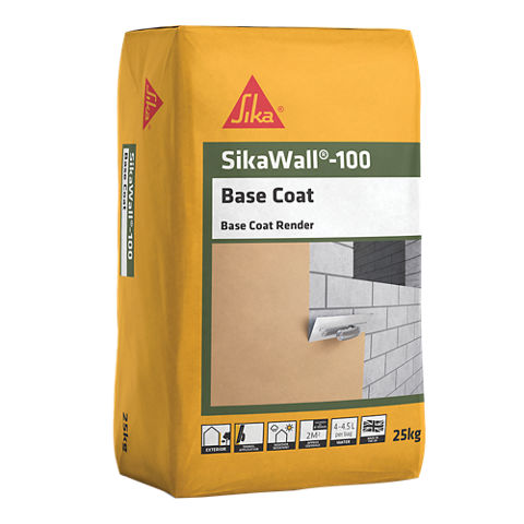 SikaWall@-100 Base Coat is a factory batched, cement based dry mixed render. This product only requires the addition of clean potable water; no other material should be added. SikaWall®-100 Base Coat should be keyed whilst wet before SikaWall®-530 Top Coat is applied.