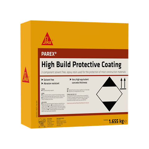 Parex High Build Protective Coating is a two-part, solvent-free epoxy resin product consisting of a pigmented base resin component plus a pale yellow hardener component. The colour coding enables homogeneous mixing to be easily achieved. The product is applied as a high build protective coating to steel, iron, aluminium, concrete, masonry, hard natural stone and other construction materials. Applied coating is resistant to mechanical damage, abrasion and will give protection against weathering, chemical attack and corrosion. The product gives a high build coating in a single application which cures to hard semi-gloss finish within 24 hours.