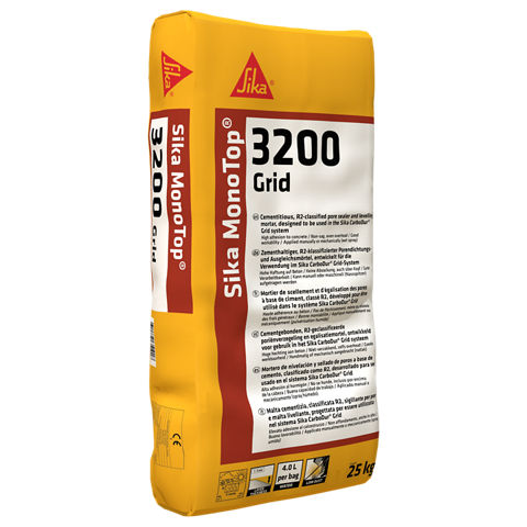 Sika MonoTop®-3200 Grid is a one-part, cementitious, low shrinkage, surfacing or finishing mortar. It is designed to be used in combination with the Sika® CarboDur®-300 Grid as part of the Sika® CarboDur® Grid System which provides an efficient strengthening system for concrete structures.