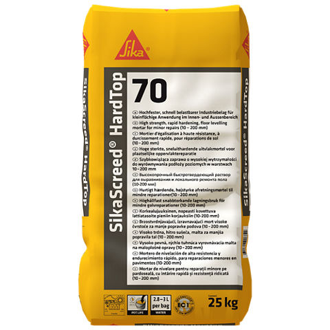 SikaScreed® HardTop-70 is a cementitious, one-part, rapid hardening, high strength, floor levelling screed and repair mortar for industrial floors. The Product provides a low maintenance, high mechanical and abrasion resistant smooth screed, suitable as a finished surface or a base layer for resin based coating. Layer thickness 10 to 200 mm. Suitable for both internal and external use.