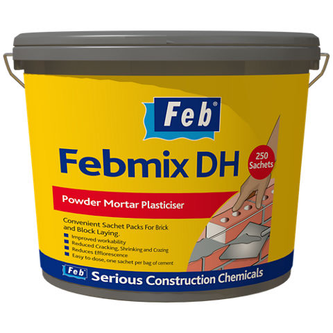 Feb® Febmix® DH is a mortar plasticiser in powder form for use as an alternative to lime or as a supplement to lime to aid mortar durability. Complies with EN934-3. Feb® Febmix® DH will entrain microscopic air bubbles into cement mortars in a controlled manner as specified in EN934. Air entrained mixes produce greatly enhanced working properties with a reduced demand for mixing water. Feb® Febmix® DH also improves frost resistance in both freshly laid and hardened mortars, as the microscopic air bubbles entrained provide space for expansion of water due to freezing.