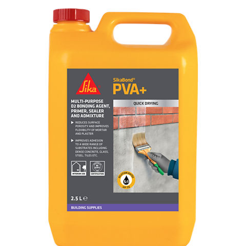 SikaBond® PVA+ is an ideal primer and sealer for concrete and plaster. It has been designed specifically for use in the building industry as a general purpose, quick drying bonding agent for concrete and cement. It also acts as a mortar improver and admixture for screeds and renders.