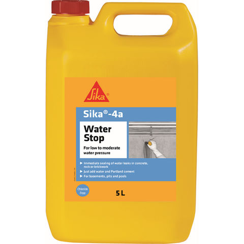 Sika®-4a is a rapid setting water stopping cement additive. When mixed with ordinary Portland cement and water, it sets rapidly to seal areas of moderate water infiltration through concrete, rock or masonry.