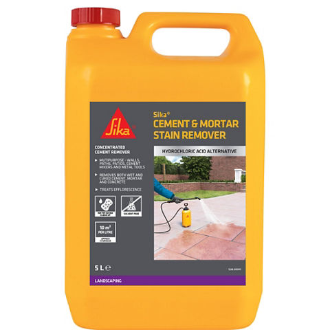 Sika® Cement & Mortar Stain Remover is a powerful, multi-purpose cleaner designed for the effective removal of cement, mortar, and concrete stains from most mineral surfaces, including walls, paths, and patios. As an alternative to hydrochloric acid, it also removes surface salts and efflorescence from mineral substrates such as brick. In addition, it serves as an excellent general-purpose cleaner, capable of removing ingrained dirt, grease, and stains from paths and patios. Sika® Cement & Mortar Stain Remover can be diluted with water to suit a variety of applications. Unlike hydrochloric acid based products Sika® Cement & Mortar Stain Remover can be safely used on most metal surfaces such as tools, cement mixers and other construction equipment.