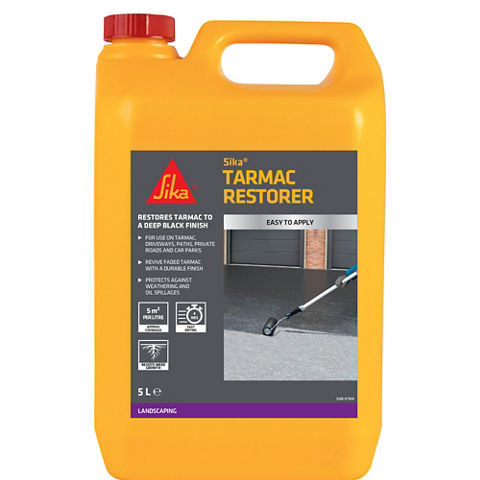 Sika® Tarmac Restorer is a high performance, water-based surface coating designed to restore and enhance the appearance of faded or stained tarmac. Once dry Sika® Tarmac Restorer provides a tough, durable, low sheen finish which protects from weathering, oil and petrol spills and weed growth. Easy to apply and quick drying, most driveways can be used again within 4 hours.