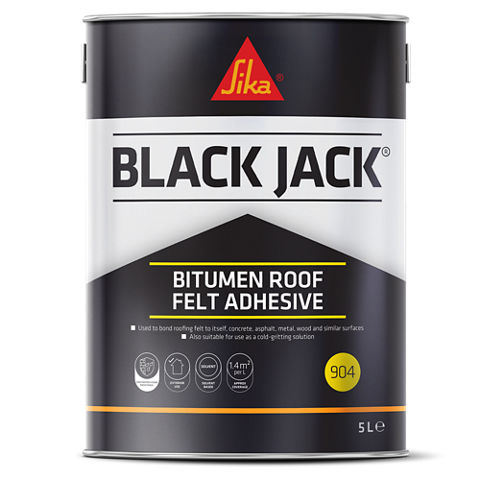 Sika® Black Jack®-904 Bitumen Roof Felt Adhesive is a cold applied, oxidised bitumen based adhesive used to bond roofing felt to most surfaces. Specifically designed for bonding all types of roofing felt to metal, concrete, wood, sealing felt laps and as a cold gritting solution for bonding mineral chippings.