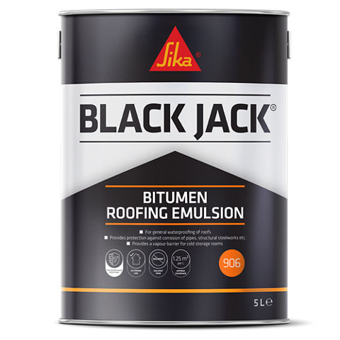 Sika® Black Jack®-906 Bitumen Roofing Emulsion is a stable bitumen/water emulsion of medium brushing consistency which dries to a black, flexible coating. The product is specially designed for general waterproofing of roofs and provides protection against corrosion of pipes and structural steelwork.