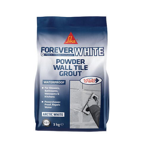 Sika® Forever White Powder Wall Tile Grout is a cement based powdered grouting compound with added PVA to promote adhesion and water repellents to shed water. Simply mix with water to give a pure white paste. Sika® Forever White Powder Wall Tile Grout dries to an extra brilliant white finish.